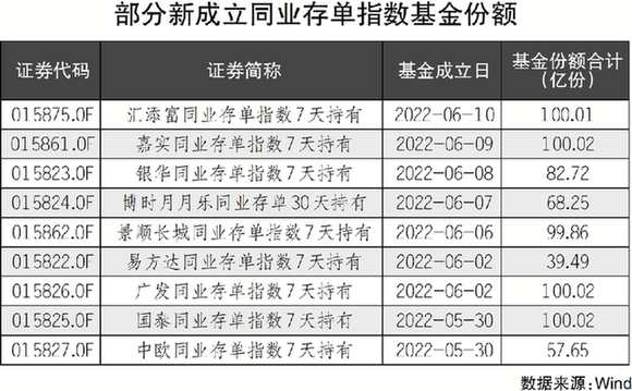在今年整体较为冷清的基金发行市场下,同业存单指数基金却发行火热。Wind数据统计,截至6月16日,已有21只同业存单指数基金成立,最新规模合计迈上千亿元台阶,达1458.30亿元。其中,2022年成立的同业存单指数基金便达到了15只。与此同时,还有90余只同业存单指数基金处于等待审批状态中。