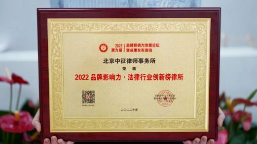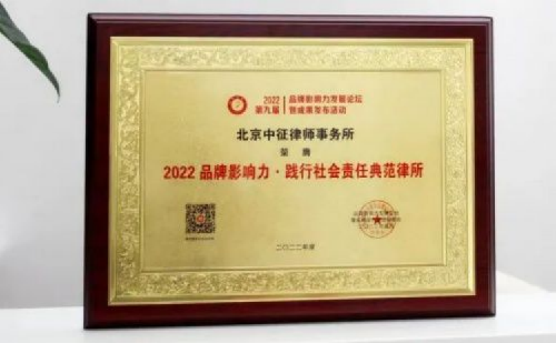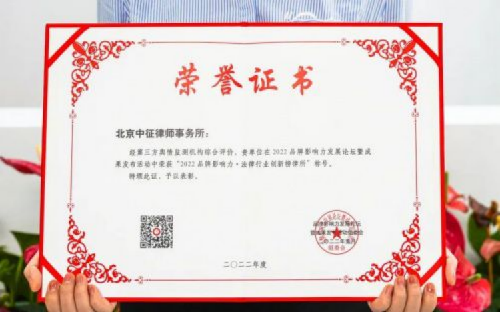 中征律师事务所荣膺2022品牌影响力
