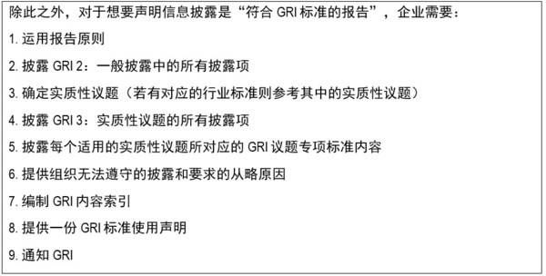 对于企业来说,使用GRI行业标准更有助于其获取行业相关实质性议题的信息。企业明确自身可持续发展实质性议题时,必须与所处行业的标准相契合(如有)。通过审查适用于公司所在行业的GRI行业标准,确定该行业标准中的每个议题是否对该公司同样重要。之后,需要在GRI内容索引中列出该公司在所适用行业标准中确定的非实质性议题,并解释其不重要的原因。如果没有适用的行业标准,企业应当明确说明行业内公司生产经营时对社会、环境等产生的影响,并确定这些影响是否被纳入实质性议题范围中。