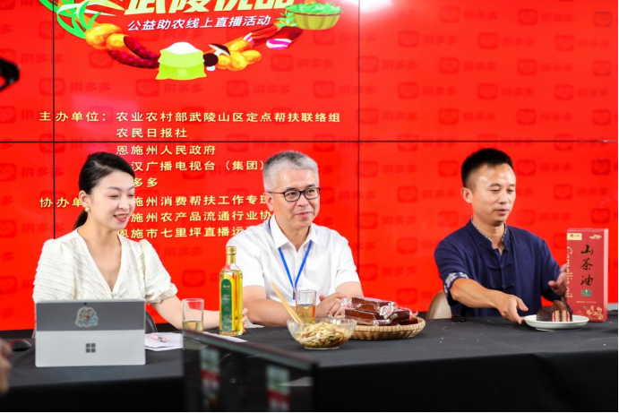 风情武陵山,大美恩施州;一山有四季,十里不同风。优良的生态环境,孕育出生态绿色食品。好农货要“产出来”、“管出来”,还要“说出来”、“卖出来”。7月15日,农业农村部武陵山区定点帮扶联络组、农民日报社、恩施州政府、拼多多联合在湖北省恩施市直播运营基地举办了一场“寻鲜恩施 武陵优品”公益助农直播活动,11位武陵山区县市领导出镜推介当地山水文化资源以及48款当地农特产品尖货,引来150万网友关注选购。