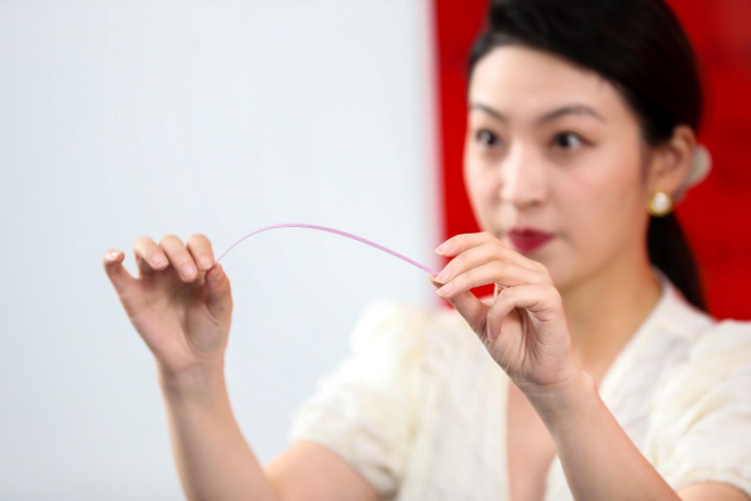 主持人在展示恩施来凤面条的韧性。 摄影 和际