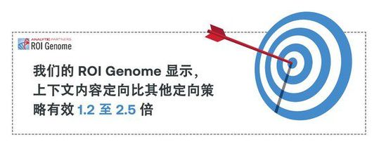 Analytic Partners勘讯咨询的 ROI Genome 显示,在成本相当的情况下,上下文内容定向(contextual targeting)的平均效果比其他形式的定向策略高 1.2 到 2.5 倍。上下文定向(根据网站内容与产品相关性展示广告)对于品牌和知名度的建立非常有效。