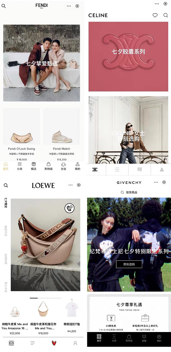 FENDI芬迪O’Lock Swing中国情人节限量版手拿包,可手提或腋下背携,邂逅 相遇时刻的怦然心跳。CELINE思琳七夕胶囊系列手袋,以浪漫色调重塑多元廓形,谱写节日心动篇章。LOEWE罗意威七夕特别限定心形迷你Flamenco手拿包,饰有情人节图案,表达炽热的爱情。DISNEY×GIVENCHY纪梵希《101忠狗》七夕特别限定系列也已上线京东,依托Content Hub功能,消费者点击图片中的“风格搭配”,将有更多扩展内容指导选购。