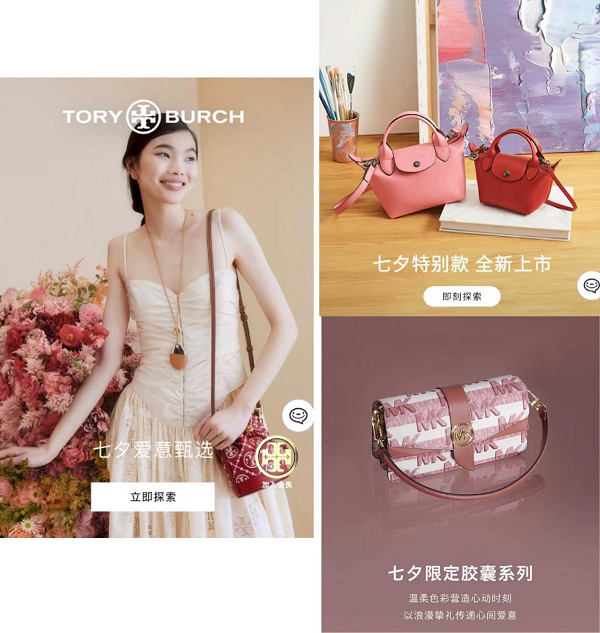 契合年轻一代的时尚品味,众多轻奢品牌在京东组团推出七夕好礼。MCM七夕限定系列以斗牛犬卡通形象为灵感,选用清新浪漫的樱花粉为基调,与品牌Logo结合呈现在包袋和配饰单品上。选购MCM七夕限定新品礼盒,内含限量礼盒包袋、iPhone 13手机壳,更显浪漫格调。Tory Burch七夕情人节系列迷你压花托特包,采用源自宾夕法尼亚州荷兰绗缝的经典图案,魅力隽永又风格独具。Longchamp Le PliageCuir七夕特别款迷你斜挎包、Michael Kors七夕限定胶囊系列等轻奢美包,也在京东等待有缘人邂逅。