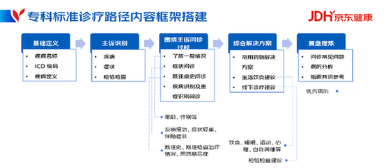与《制度》着眼于保障互联网在线问诊服务正常秩序不同,《诊疗路径》主要致力于让互联网执业医生在问诊过程中有方可循、有据可依。《诊疗路径》从线上常见的19个疾病科室的问诊以及育儿、心理健康、营养咨询等健康咨询服务出发,为执业医生提供包括基础知识、诊疗过程、综合解决方案、病历复盘在内的标准化诊疗流程,有效提升医生工作质量与效率。
