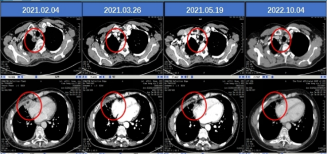 以下为CT-3505胶囊治疗基线(2021-02-04)及治疗过程中及最后1次随访肺部病灶部分影像资料: