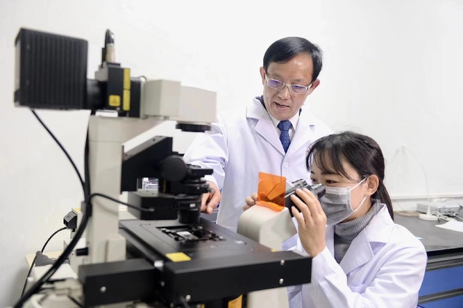 许能贵教授(左)在实验室。(受访者供图)