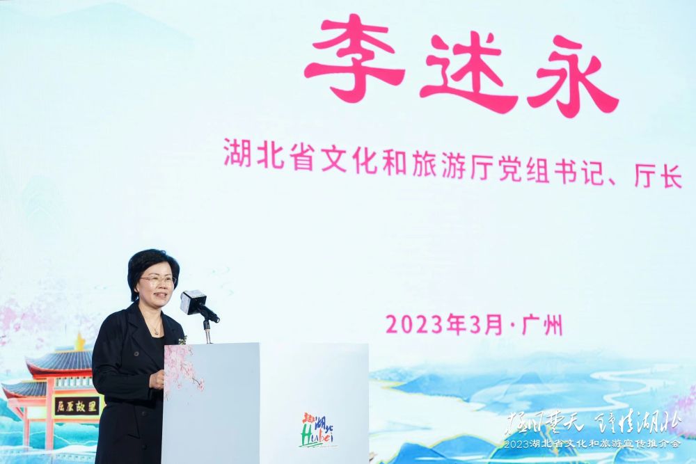 本次推介会由湖北省文化和旅游厅主办,湖北省文化和旅游厅党组书记、厅长李述永,湖北省文化旅游厅党组成员、副厅长陈武斌,广东省文化和旅游厅党组成员、副厅长张奕民出席活动并致辞,湖北省文化和旅游厅党组成员、副厅长陈武斌推介2023年湖北春季惠民政策。