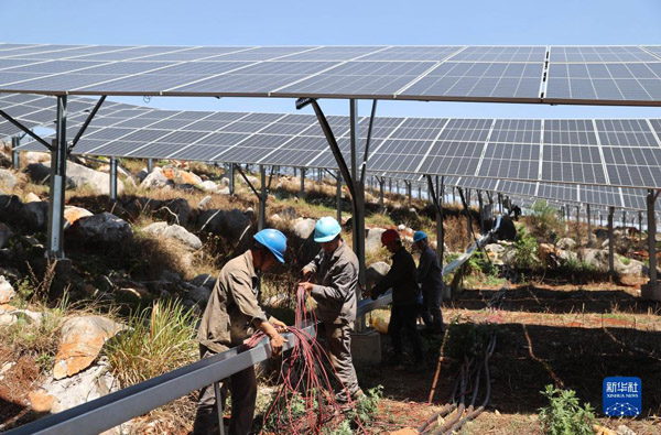 近年来,云南省文山壮族苗族自治州砚山县科学利用光伏资源,结合石漠化治理、生态修复、种养殖业发展等,在石头山上因地制宜建设“光伏+”综合利用项目,助力乡村振兴。