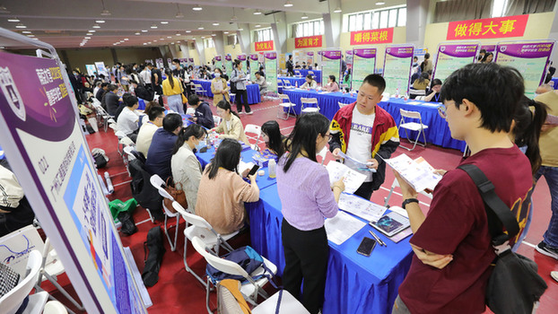 这是4月16日拍摄的南京大学2023届毕业生春季双选会现场。当日,南京大学2023届毕业生春季双选会在南京大学仙林校区举办。双选会面向校内外学生开放,吸引了来自北京、上海、南京等地的180家企事业单位参会,提供近1.5万个岗位。