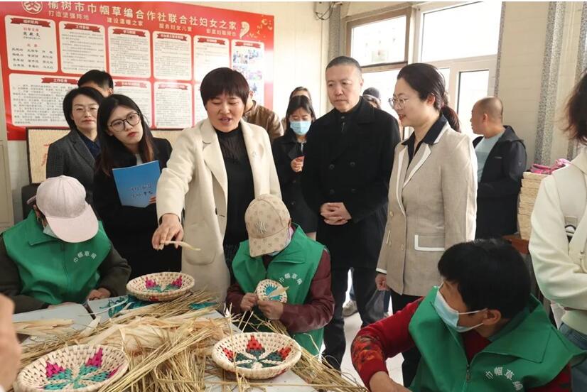 △中国妇基会、联想控股公益基金会等嘉宾考察榆树巾帼草编专业合作社