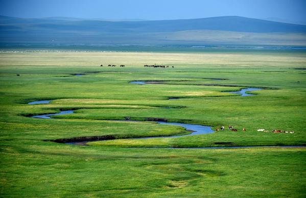 这是内蒙古锡林郭勒盟东乌珠穆沁旗美丽的乃林高勒草原风光(2019年7月20日摄)。新华社记者 任军川 摄