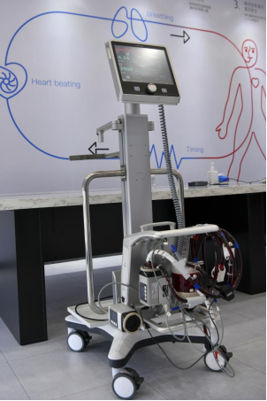2023年1月4日,国家药监局应急批准深圳汉诺医疗科技有限公司体外心肺支持辅助设备、一次性使用膜式氧合器套包注册申请,二者配合使用,用于急性呼吸衰竭或急性心肺功能衰竭、其他治疗方法难以控制并有可预见的病情持续恶化或死亡风险的成人患者。作为国产首个ECMO设备和耗材套包,性能指标基本达到国际同类产品水平。新华社记者 梁旭 摄