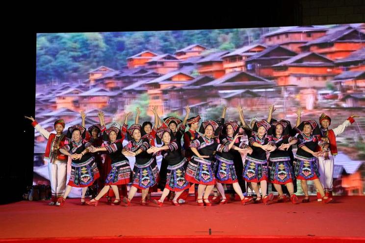 9月30日,在社区国庆节晚会上,居民们在表演民族舞蹈。(社区供图)