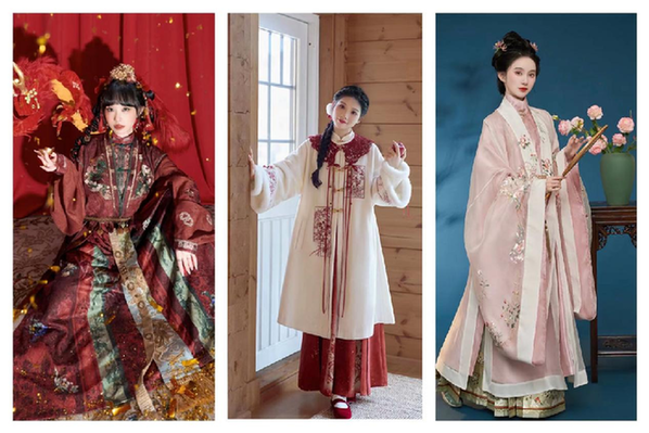 在“龙年效应”加持下,龙纹裙也成为炙手可热的单品。十三余小豆蔻儿龙吟颂福褶裙汉服,以龙腾云海的吉祥纹样和红绿撞色设计思路,带来强烈的视觉冲击。冬季国风穿搭增添了对襟袄这样的季节款,在京东热卖的七月夕原创长乐绣花对襟长袄,以非遗剪纸为灵感,整体造型生动有趣。如果希望造型的古装感更强,可以尝试拥有宽大袖摆的氅衣。钟灵记行香子原创晚明风氅衣,拥有竖领和苏绣大袖,满身刺绣华丽动人,打卡拍照360°无死角呈现优雅美丽。