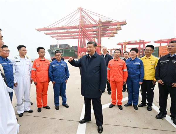 22日下午,习近平总书记在山东省日照市考察调研。他先后来到日照港和阳光海岸绿道,了解当地推进港口智慧化绿色化建设、扩大对外开放和加强海岸线生态保护修复、提高人民生活品质等情况。(文字记者:张晓松、朱基钗;摄影记者:鞠鹏、谢环驰、李涛、殷博古)