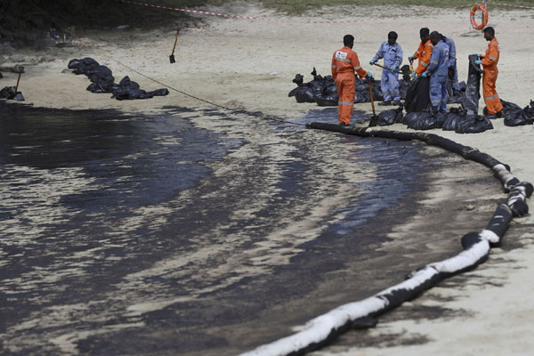 14日14时20分左右,两船在新加坡的巴西班让码头发生碰撞,受损加油船上部分油料泄漏到海水中。