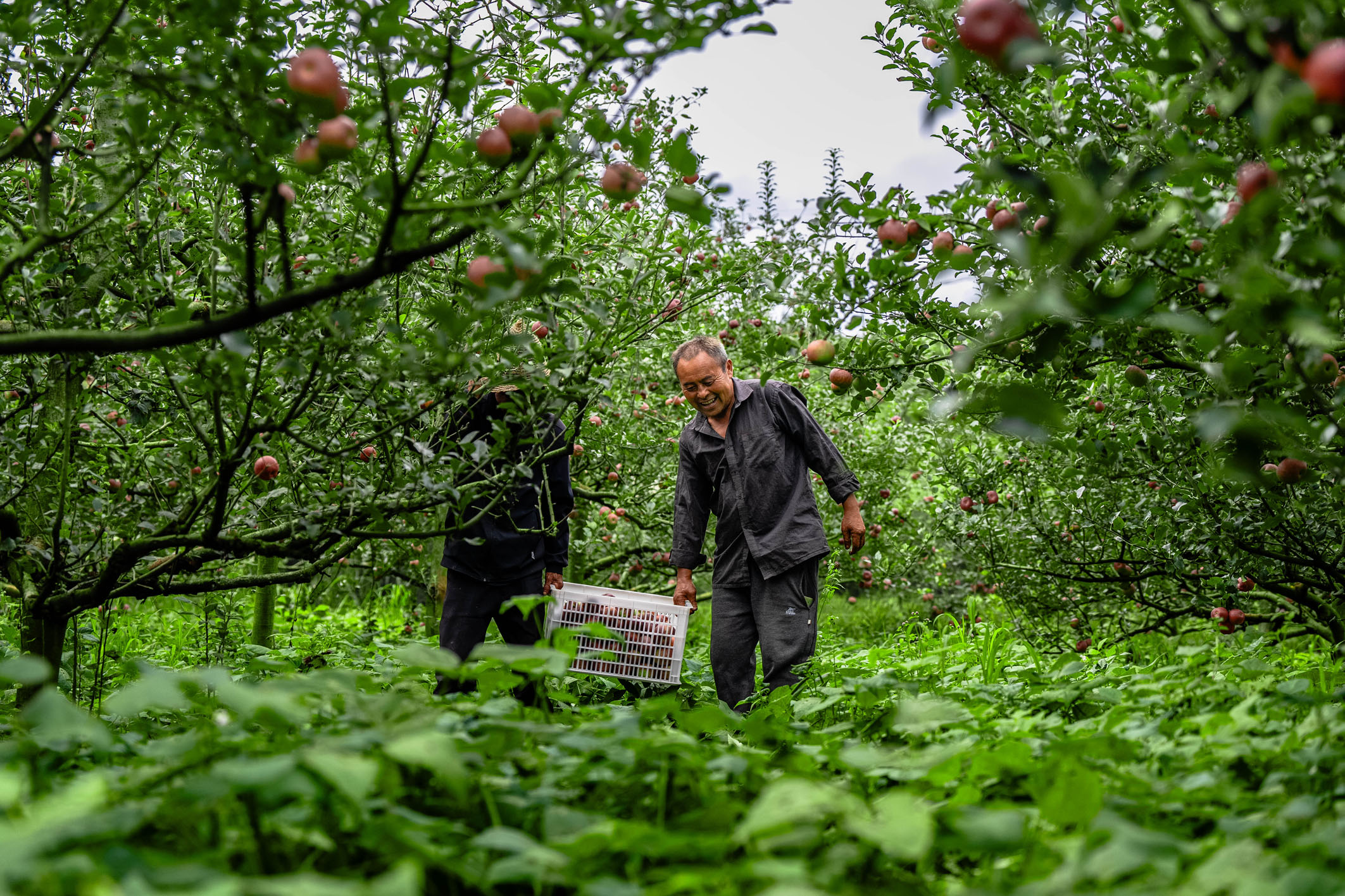 9月3日,云南省红河州蒙自市西北勒乡的农户在搬运苹果。近日,云南省红河州蒙自市西北勒乡的苹果进入成熟期,果农们抓紧时间采摘、分拣、装运,供应市场。近年来,当地不断推进生态修复和产业发展,大力推广苹果种植,种植面积达5.2万亩,全年产量预计超过1.5万吨,带动1412户农户种植苹果致富增收。
