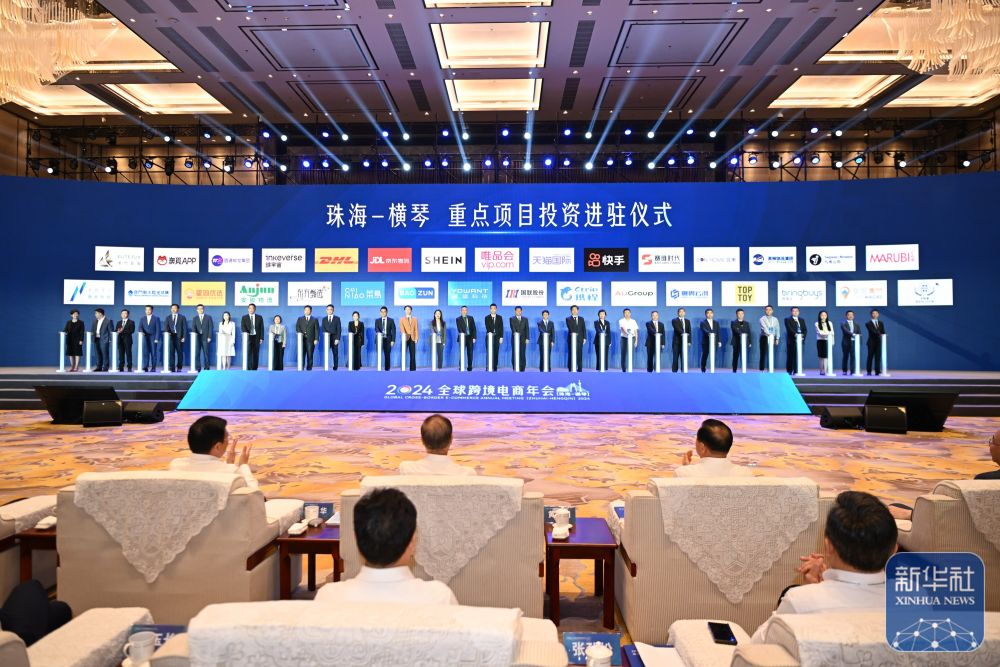 ↑这是10月8日举行的2024全球跨境电商年会(珠海-横琴)开幕式现场。新华社记者 邓华 摄