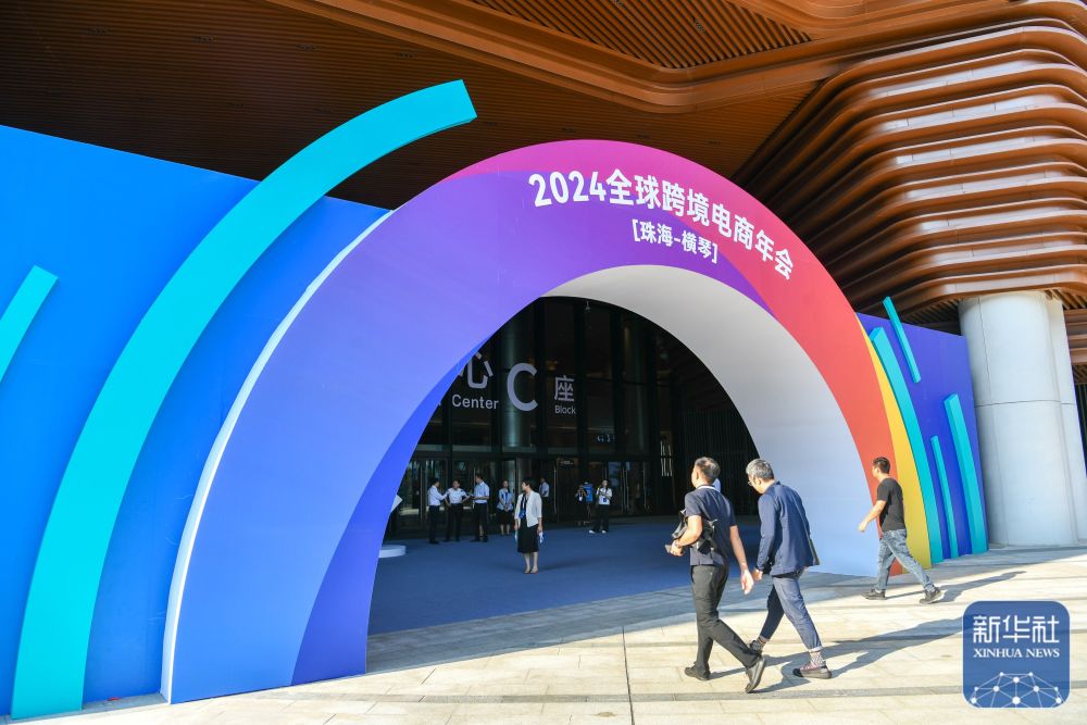 10月8日至9日,2024全球跨境电商年会(珠海-横琴)在广东珠海国际会展中心举行,与会者围绕“新高地·新优势·新动能”主题,研讨产业发展和生态构建,聚焦行业机遇和全球趋势。新华社记者 梁旭 摄