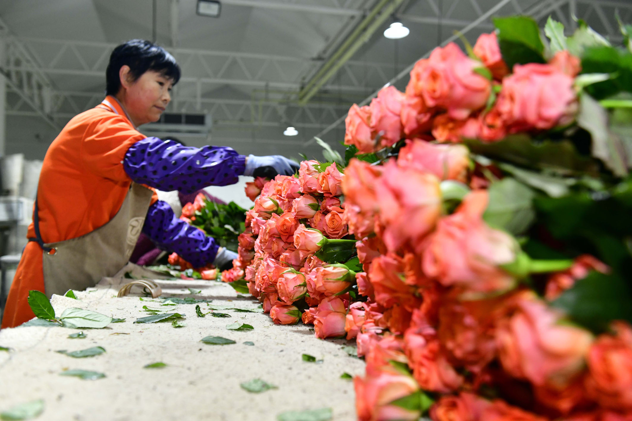11月14日,在日照市莒县招贤镇曲坊现代农业产业园,工作人员在整理玫瑰。招贤玫瑰已成为当地一张产业名片。