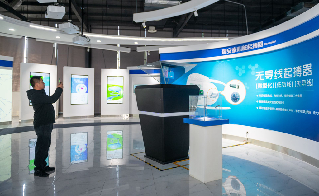 ▲百多安医疗器械股份有限公司无导线起搏器产品展示区