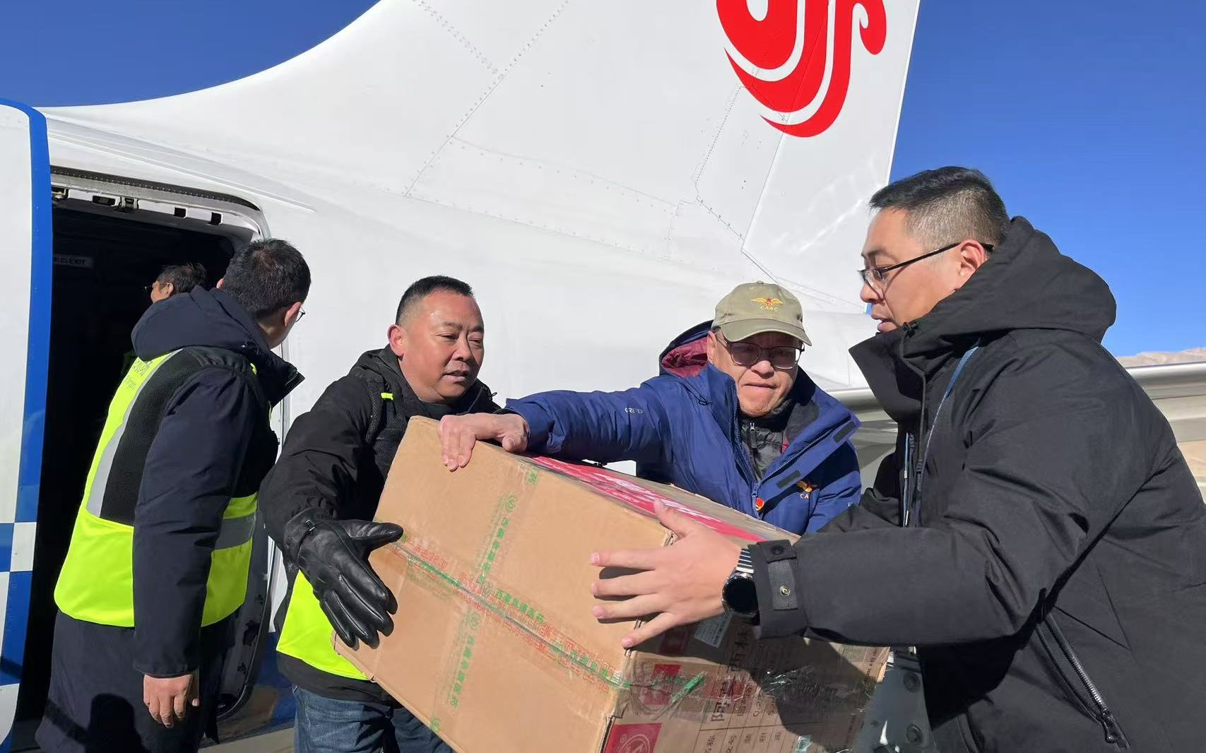 1月9日11时6分,国航CA4401成都至拉萨航班运送中国乡村发展基金会调拨的救援物资顺利抵达拉萨。11时33分,搭载着救援人员及救援物资的国航抗震救灾包机CA051在日喀则定日机场降落。