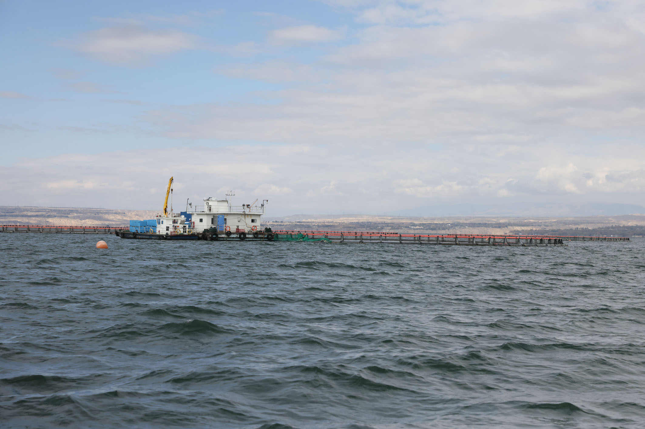 2024年10月18日拍摄的龙羊峡库区内的降温出鱼平台。 记者 吕帅 摄