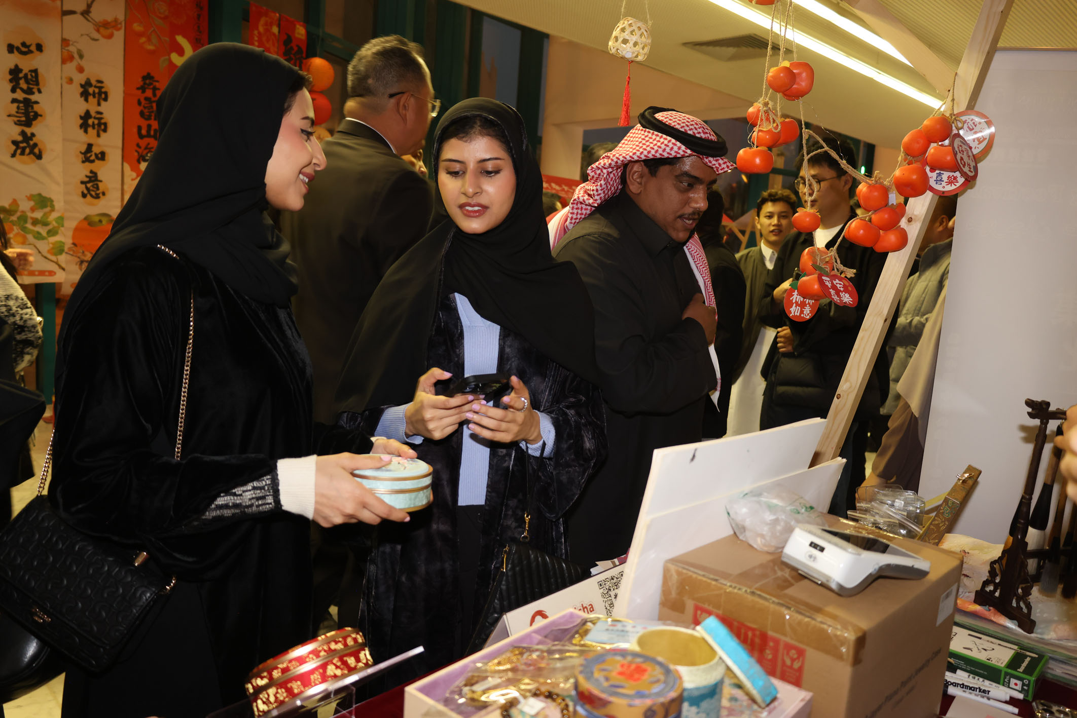 1月10日,在沙特阿拉伯首都利雅得文化宫举行的“新春大集”活动上,人们选购商品。以“温暖迎春·共庆中国年”为主题的“新春大集”活动10日至11日在沙特阿拉伯首都利雅得文化宫举办。活动以中国传统庙会的形式呈现,充分展示了多彩的中国春节文化习俗,也为庆祝中沙建交35周年和“中沙文化年”拉开序幕。