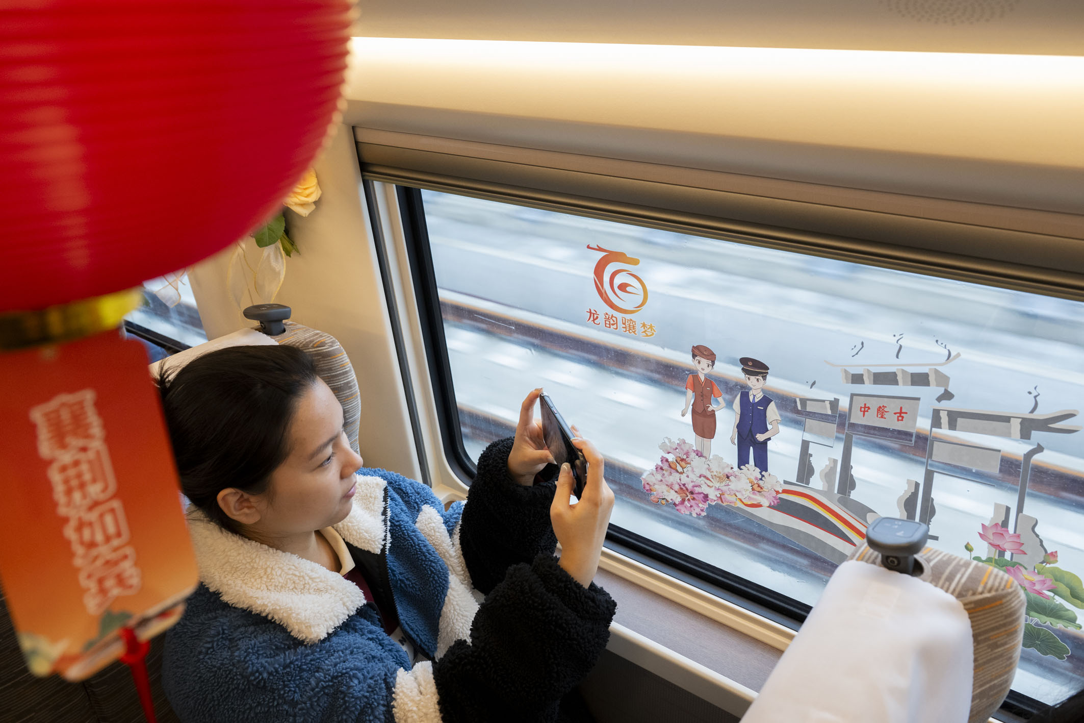 图为一名旅客在G6855次列车上拍照。
