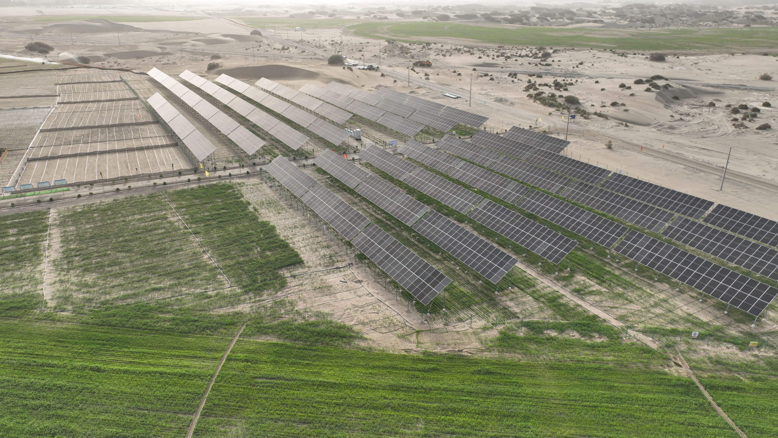 图为中广核和田洛浦光伏治沙示范项目。(中广核供图)