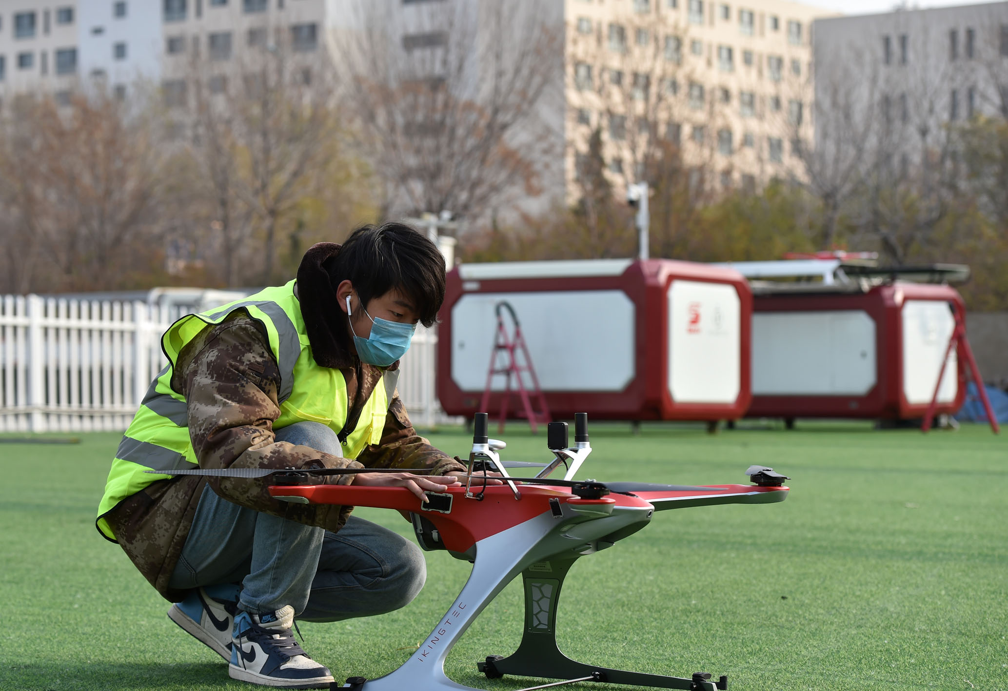 图为天津滨海新区工作人员进行无人机测试准备工作。资料照片