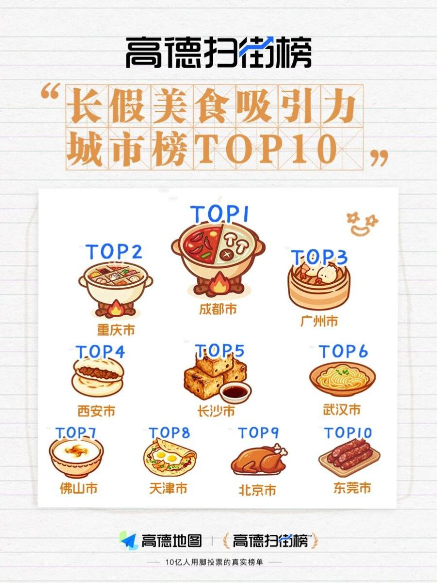 商家与博主的真实反馈,恰好印证了扫街榜的价值。截至10月3日,上线仅23天的高德扫街榜累计用户突破4亿,国庆期间为全国餐饮店带去超1亿客流量,武汉更凭借美食与景点双榜TOP20的成绩,成为消费活力代表。