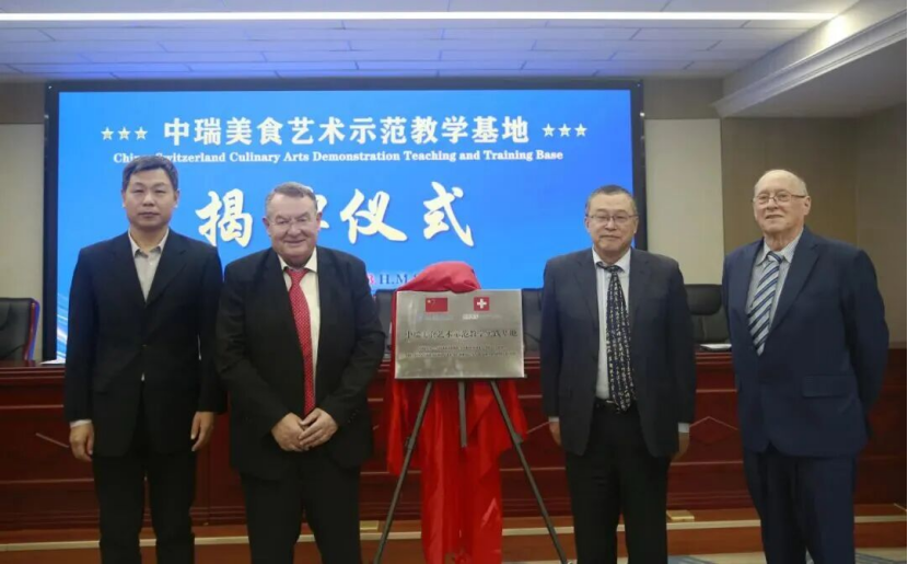 会议举行“中瑞(瑞中)美食艺术示范教学实践基地”互授及揭牌仪式。学院党委书记闫向军与 Benedict 教育集团总裁 Heinrich Konrad Meister 共同为基地揭牌,这标志着双方在美食艺术教学实践领域的又一深度合作落地。该基地的设立,将整合中瑞双方在烹饪教学、美食文化研究、实践技能培养等方面的优势资源,为师生搭建起国际化教学实践平台,助力双方在美食艺术领域的教学创新与人才培养。