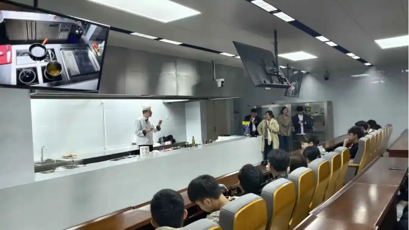 启动仪式结束后,瑞士工商酒店管理学院行政总厨兼西方美食艺术学科负责人 Shaun Leonard 受邀为学院师生开展西餐烹饪实操课程交流活动。Shaun Leonard总厨结合深入浅出的专业讲解与精湛的烹饪技艺,将西式传统烹饪工艺与现代创新理念有机融合,进行细致演示与专业指导。此次课程交流,不仅使师生近距离感受西方美食文化内涵,更有效提升了学生烹饪专业水平,获得师生一致好评。
