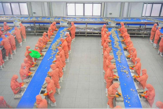为实现全链条锁鲜,海天还在养殖基地周边就近布局了现代化阳光生蚝初加工基地,实现捕捞、运输与初加工环节的高效无缝衔接。每日捕捞的生蚝当日即送入工厂初加工,在极致新鲜的状态下进入下一流程。