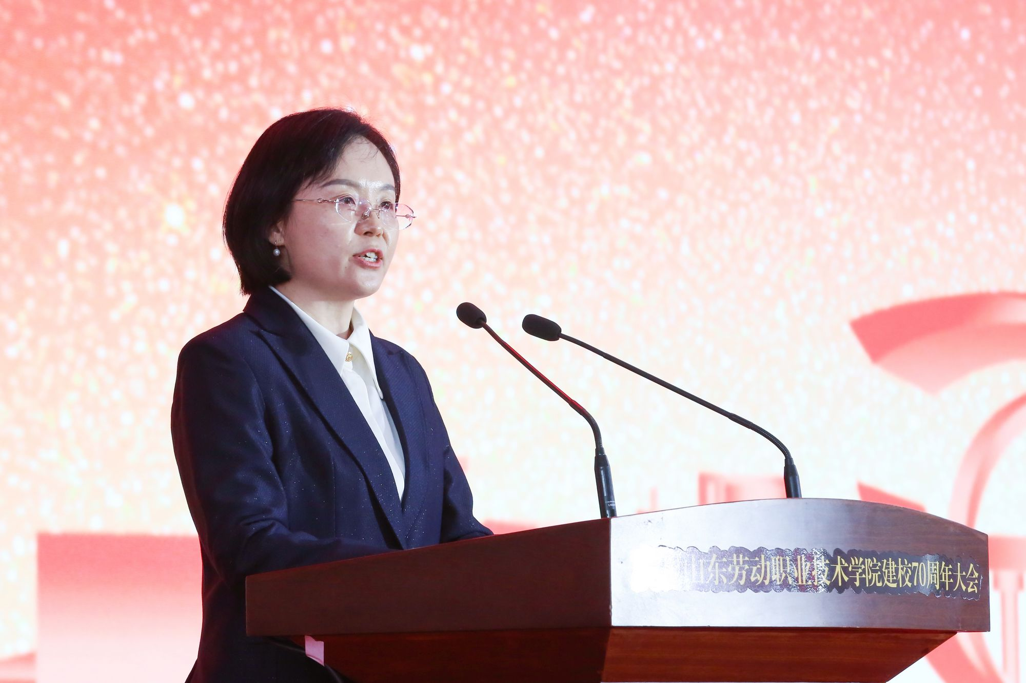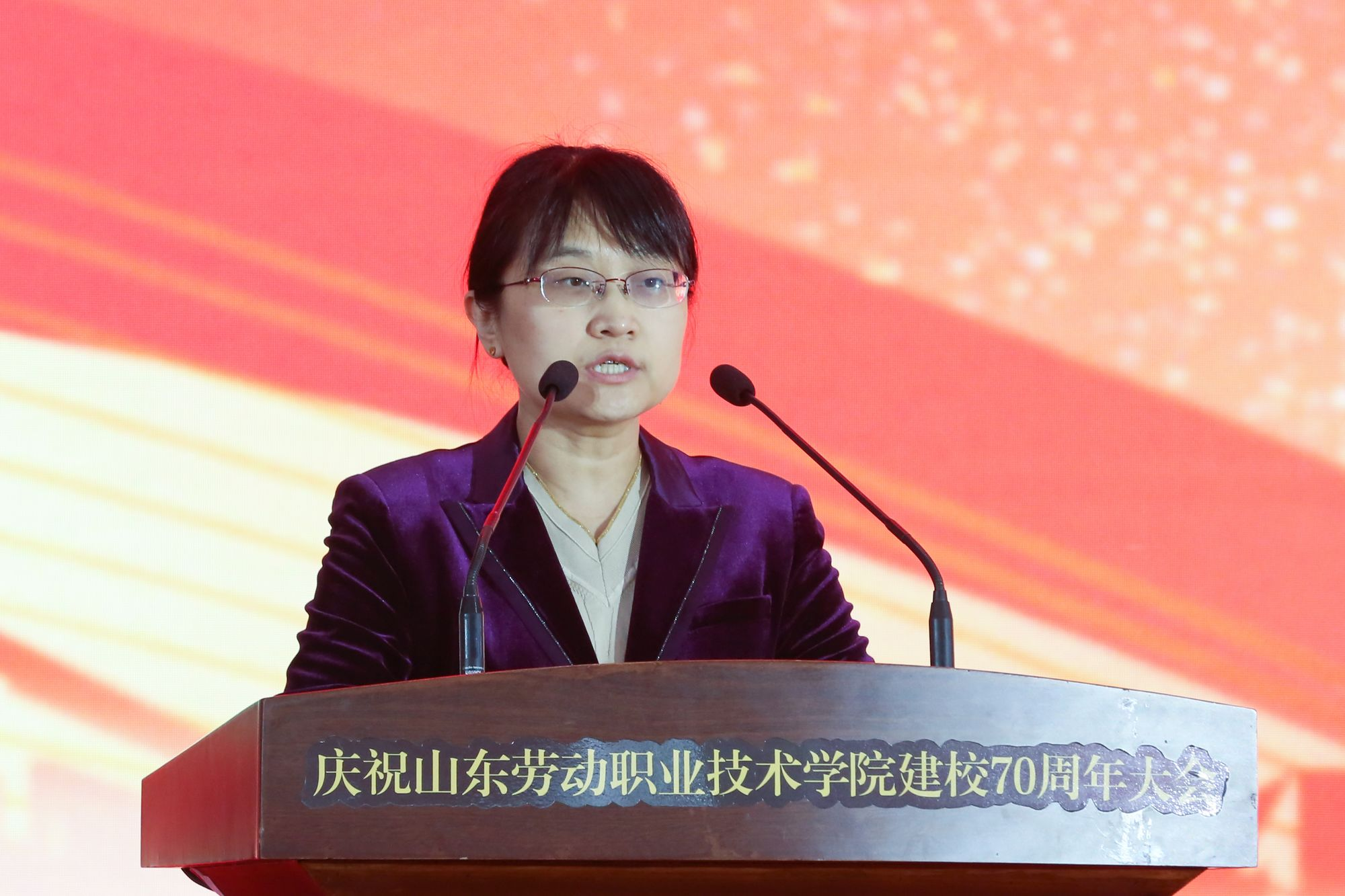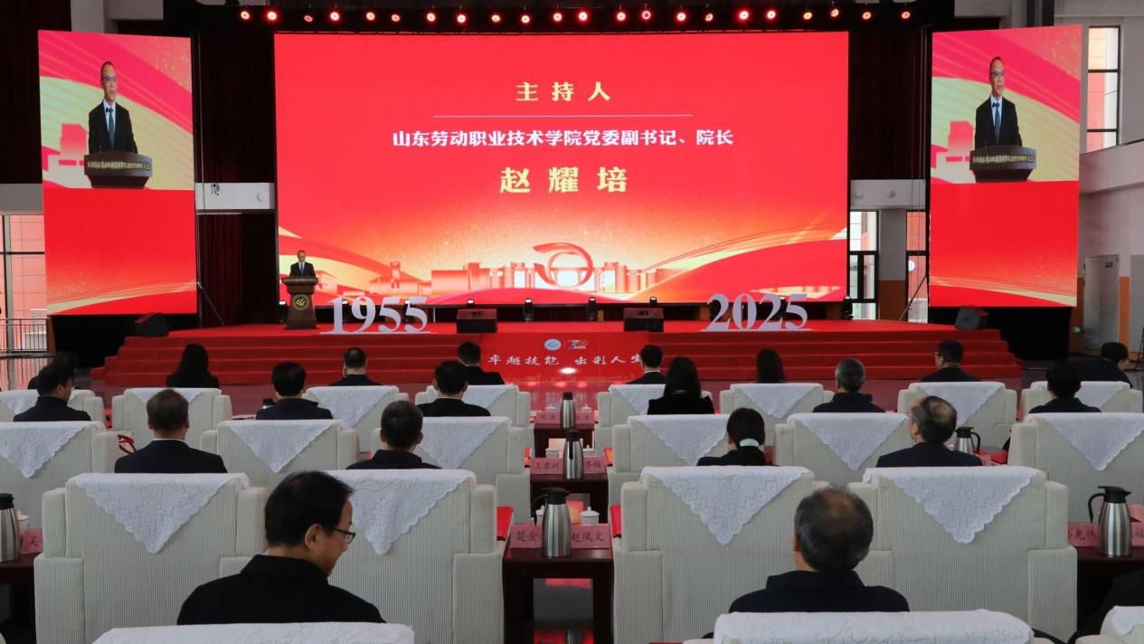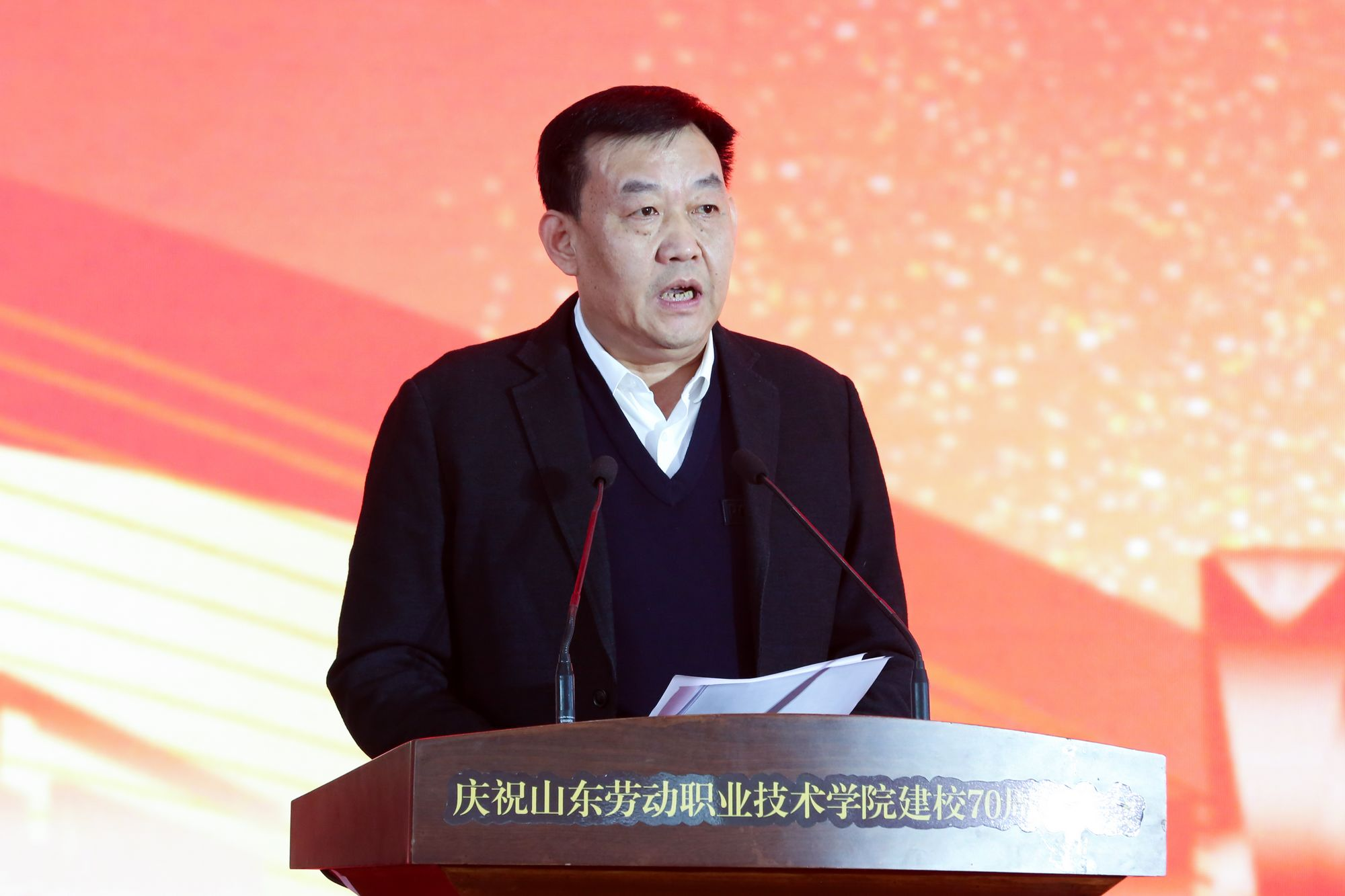 山东省人力资源和社会保障厅党组书记、厅长张涛,山东省发展和改革委员会党组成员、副主任邓涛,中共山东省委教育工委委员、省教育厅党组成员、副厅长李鹏,山东省人力资源和社会保障厅党组成员、副厅长潘文勇,中共山东省委社会工作部政策法规处处长、一级调研员黄建勇,山东省财政厅社会保障资金管理服务中心主任李风,济南市人民政府副秘书长、办公厅党组成员李成学,济南市教育局总督学马炳光,济南市人力资源和社会保障局党组成员、副局长朱卫华,槐荫区区委常委、宣传部长、区教育工委书记徐冬梅,长清区政府党组成员、副区长王君洲等领导,国内外友好院校代表、用人单位代表,学院老领导、老教师代表以及广大校友齐聚一堂,共庆学校七十华诞,共话未来发展蓝图。大会由学院党委副书记、院长赵耀培主持。