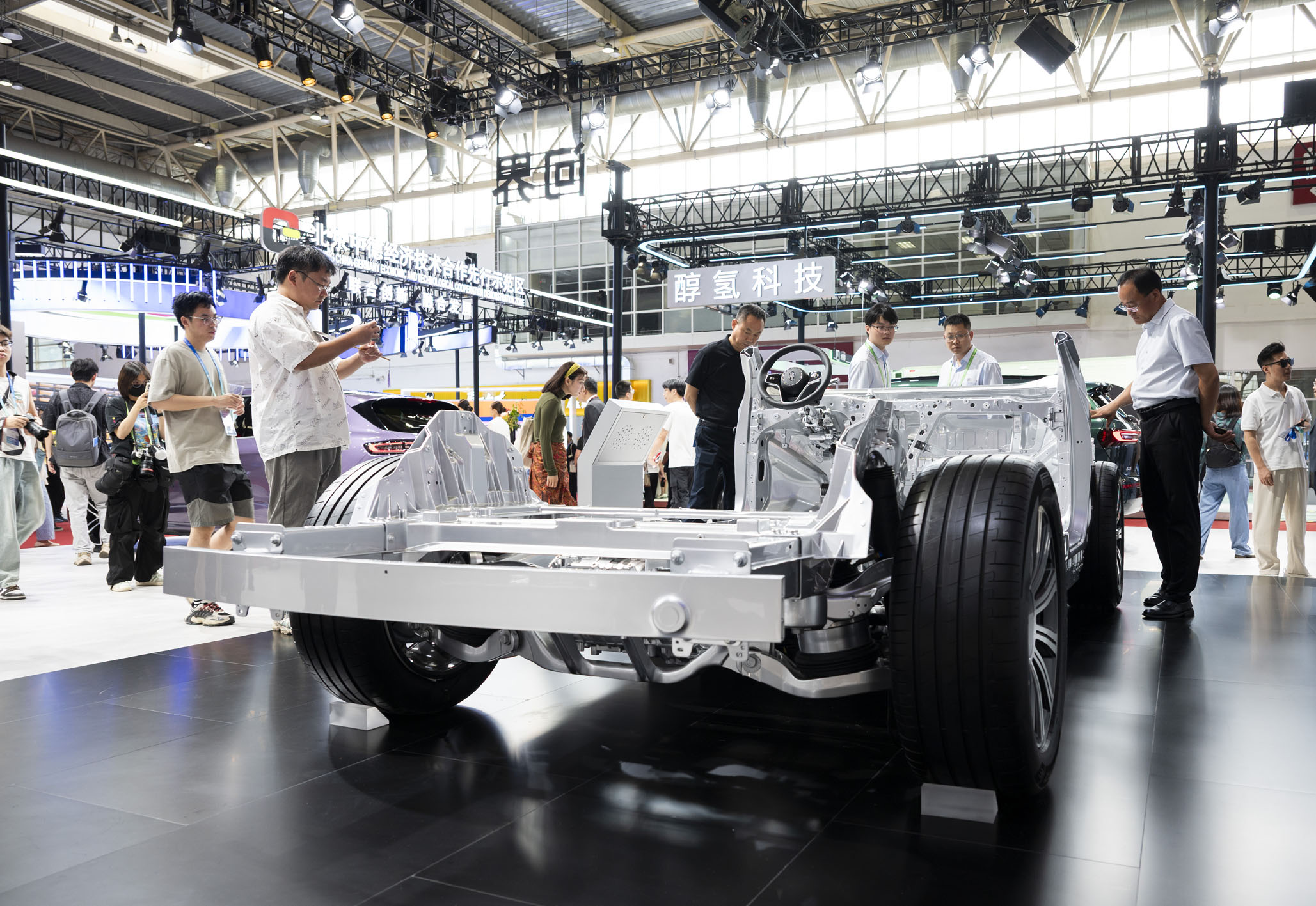 在今年7月举办的第三届中国国际供应链促进博览会设置的智能汽车链展区,30余家中外企业和机构集中展示产业链上中下游的关键技术和产品,从核心原材料、关键元器件到三电系统、智能网联,再到纯电、混动等不同技术路线的智能汽车产业链,生动呈现产业协同创新发展的成果。图为人们在智能汽车链展区参观。