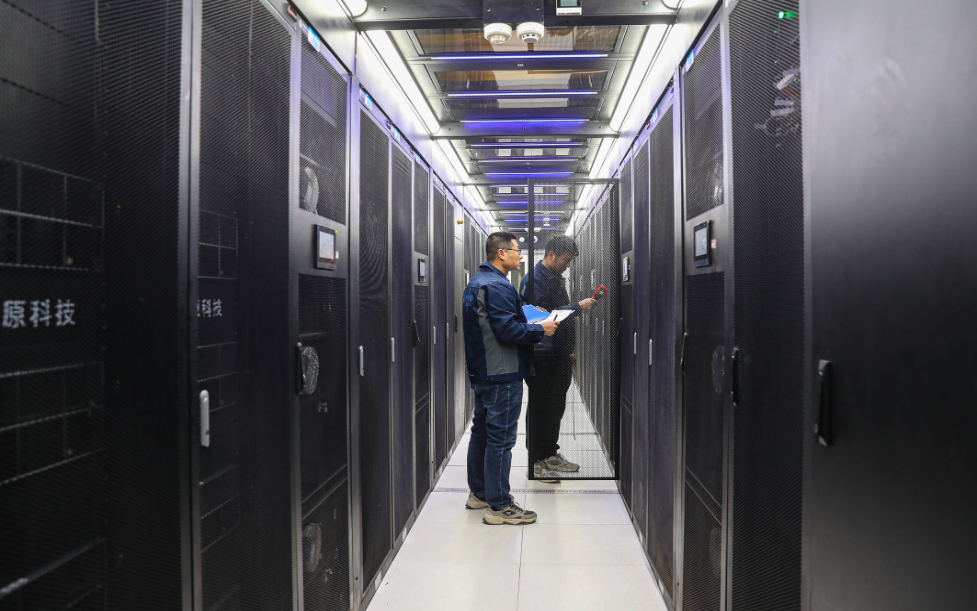 图为工作人员在中国移动(甘肃·庆阳)数据中心机房内巡检。(资料照片)