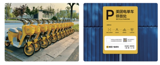 ▲美团电单车整齐停放在停车区域(摄影:艾达)