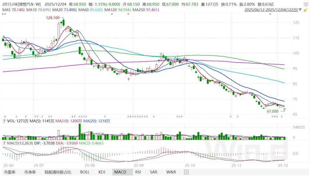 图:理想汽车近期股价持续下跌 资料来源:Wind