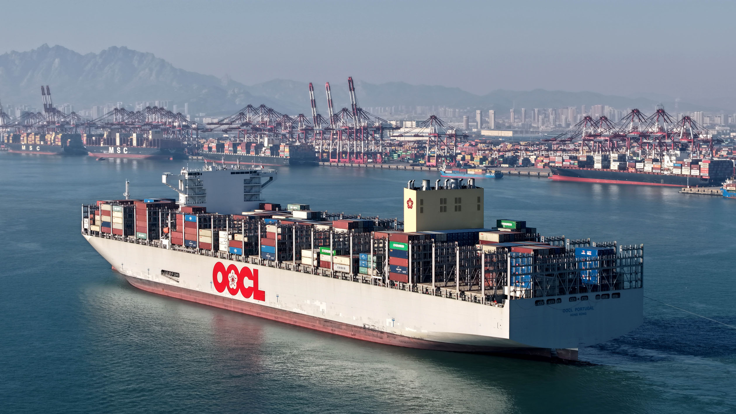 12月4日,“东方葡萄牙”轮驶入青岛港前湾港区(无人机照片)。连日来,山东港口青岛港巨轮频靠,作业繁忙,各单位向着全年目标冲刺。今年以来,作为中国北方重要的对外贸易门户,青岛港持续优化国际航线布局,将优质运力向新兴市场倾斜,构建起内外“环环相扣、无缝衔接”的运转体系。目前,青岛港外贸航线总数近240条,联通全球180多个国家和地区的700多个港口。