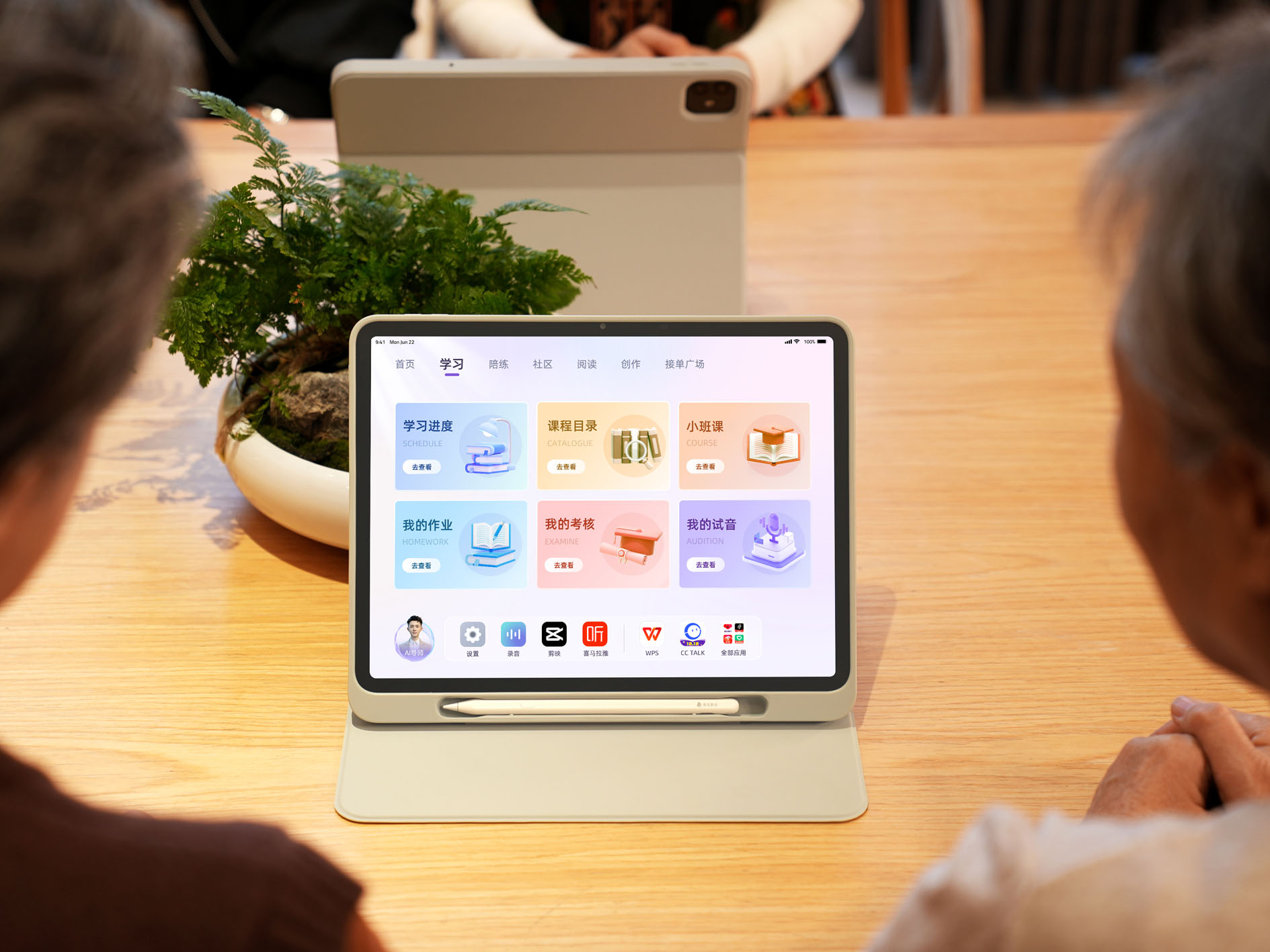 如果说AI声音陪练师解决了“练与评”的痛点,梨花AI声学学习机则构建了“学与创”的全链路生态。“作为响应银发经济政策的数字适老创新终端,梨花AI声学学习机在硬件与软件上实现了双重适老设计。”杨楠介绍,硬件采用12.7英寸2K类纸屏、四喇叭环绕声与大字体界面,适配中老年视觉与听觉习惯;软件则整合“AI声音陪练师”“AI导师”“AI测评”功能,搭配“分屏录书”等特色设计,构建起“教-学-练-测-评-创-享-社交”的完整闭环。