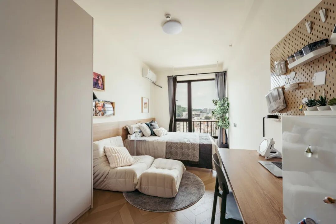 成都保利和寓天寰店以【奋斗的城南】为精神导向,通过精心设计的主题房间与多功能共享空间(阅读、健身、影音、社交等),不仅为青年提供高品质居所,更致力于构建青年社群,为蓉漂青年创造有趣、温暖、充满归属感的租住生活体验,实现从“住有所居”到“住有宜居”的升级,积极践行保障性租赁住房政策。