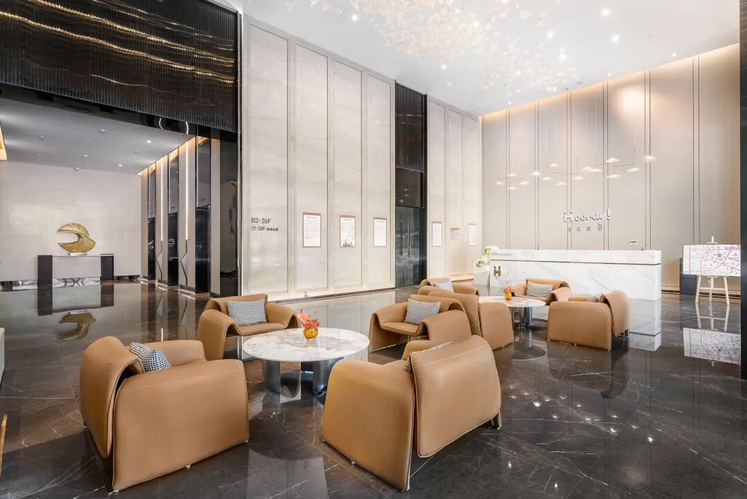 面对高难度土地条件,广州保利和寓大源店以“极致坪效革命”回应挑战。通过精准的客群洞察,将仅0.4㎡/间的公区配比,创新转化为490㎡的复合功能大堂,集成影音、健身、学习等多重场景。这不仅是空间的巧妙利用,更是对青年“第三空间”需求的深刻理解与创造性满足。