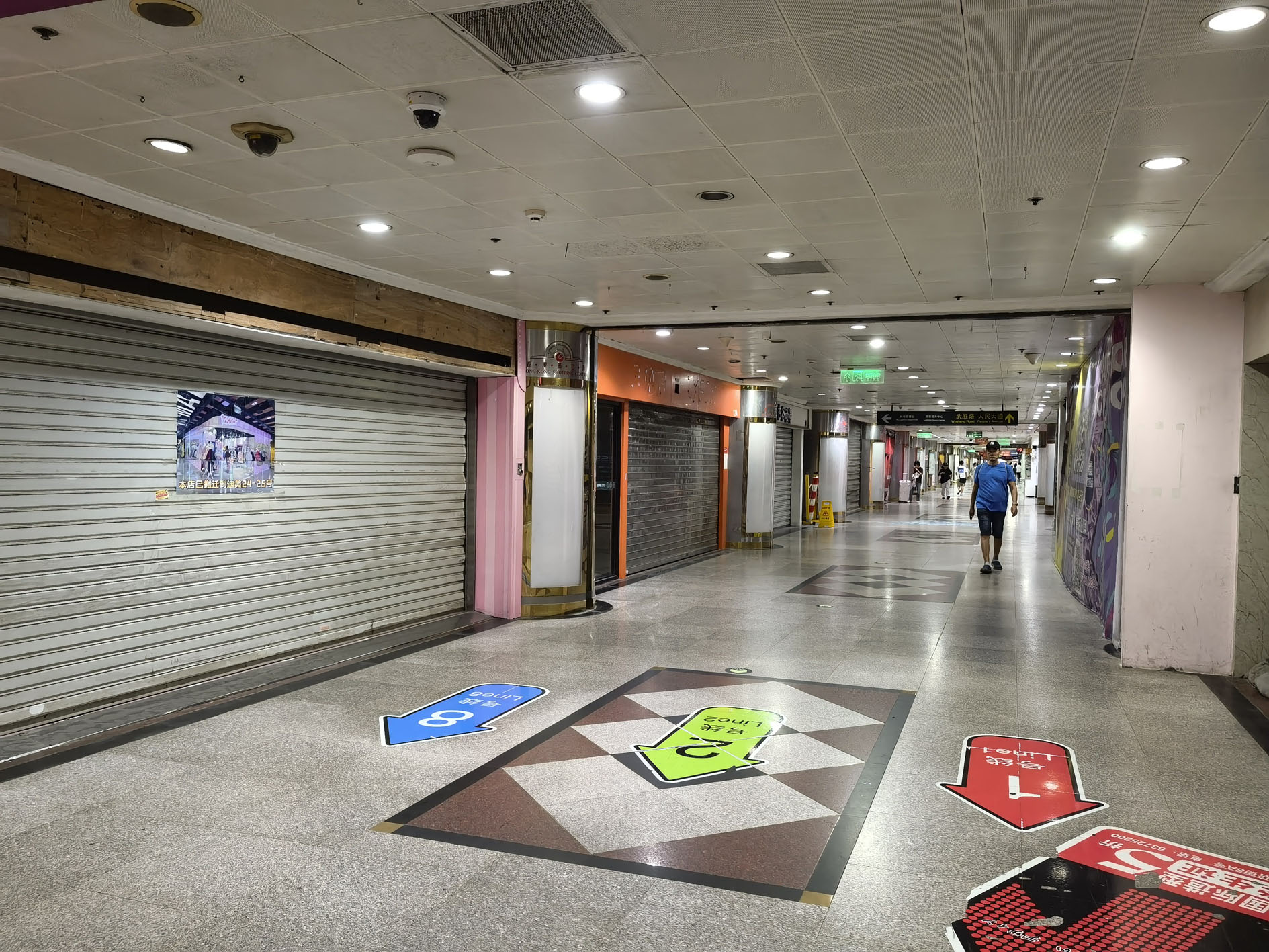 记者多次走访上海市人民广场地下商圈发现,迪美购物中心内,周末时段往往人流如织,尤其以年轻人为主要客群的动漫周边“谷子店”聚集区,呈现出一派热闹景象。然而,仅一墙之隔、与之相连的香港名店街,却是另一番萧瑟场景:商铺大门紧闭,通道灯光昏暗,空气中弥漫着潮湿的霉味。