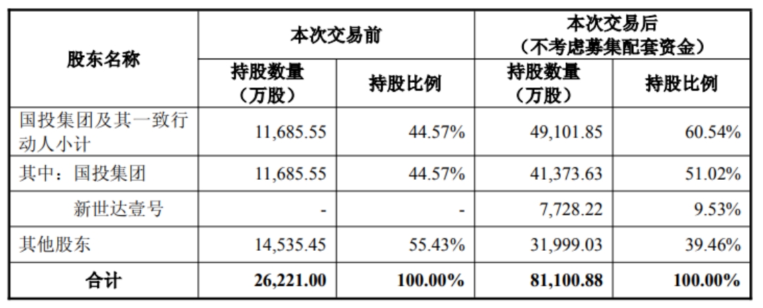 股权结构方面,本次重组后,控股股东国投集团及其一致行动人的持股比例将从44.57%提升至60.54%。值得一提的是,交易对方中的新世达壹号、大基金二期预计持有国投中鲁5%以上的股份,其中新世达壹号将表决权委托给国投集团,系国投集团一致行动人。
