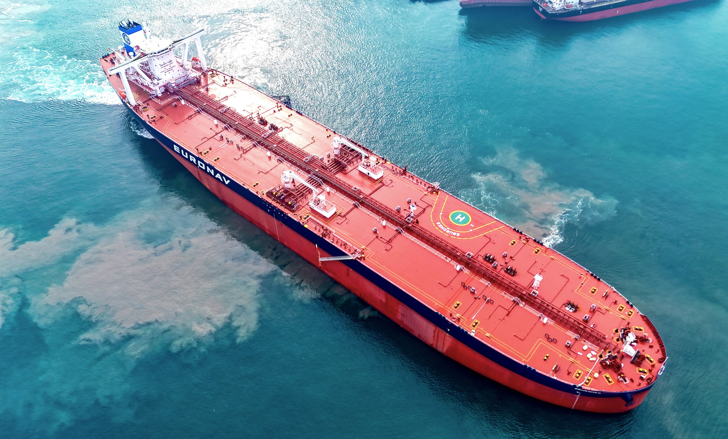 图为1月14日,31.9万吨氨预留超大型原油船“EBURONES”轮在青岛正式启航(无人机照片)。
