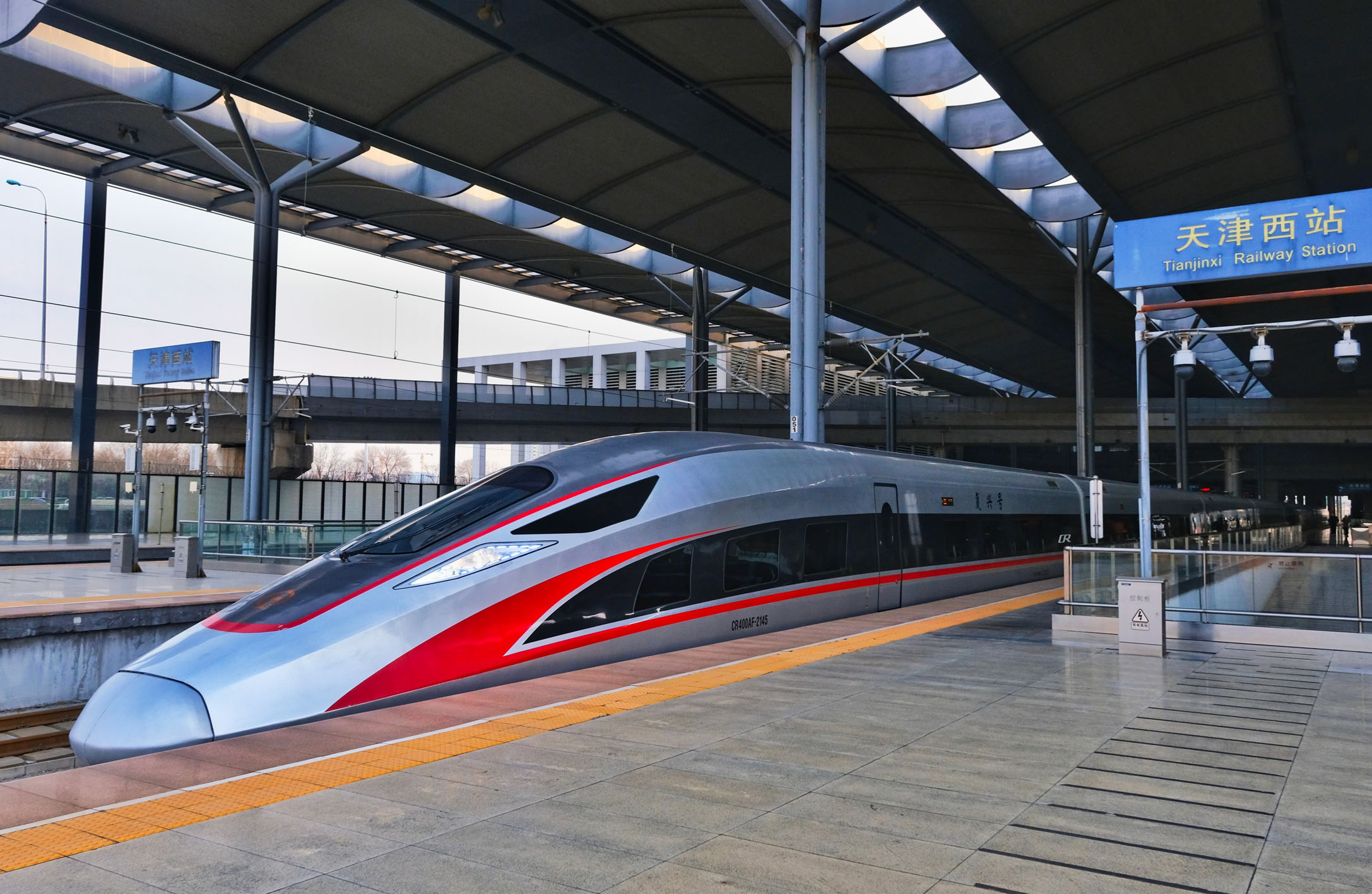 图为1月26日,一列京津冀环线高铁列车从天津西站驶出。