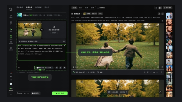 在叙事层面,模型支持最长15秒的连续生成,并引入智能分镜与自定义镜头控制,让创作者能够直接组织镜头节奏与叙事结构,不再依赖碎片化拼接,从而让镜头具备情绪递进与画面张力。